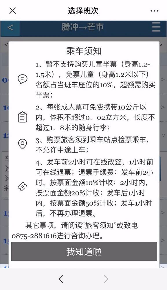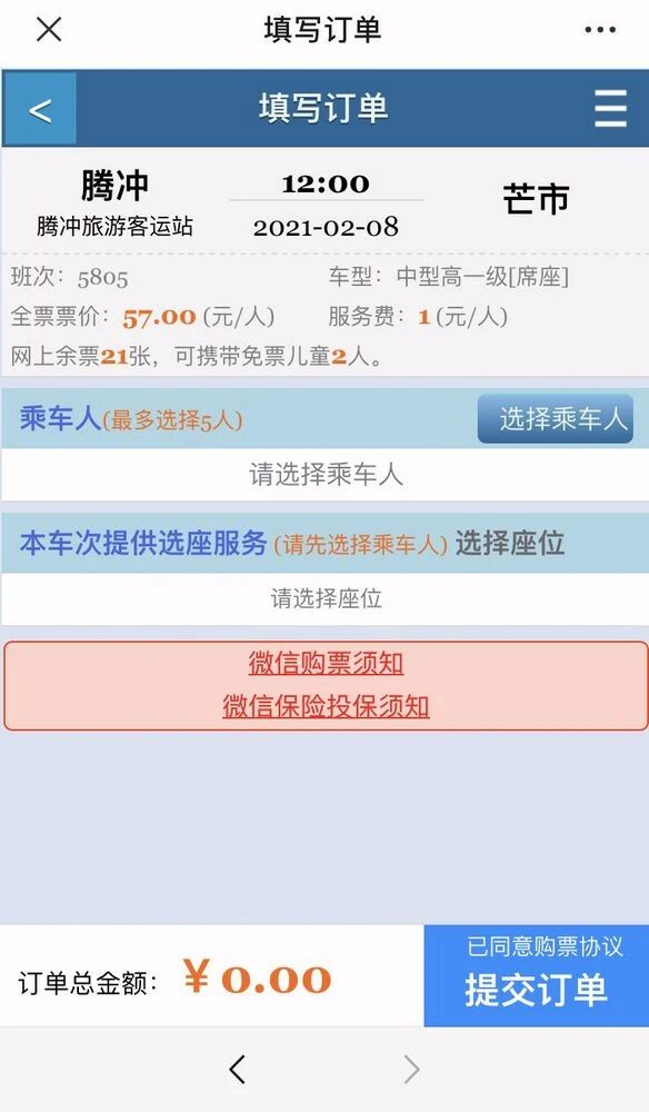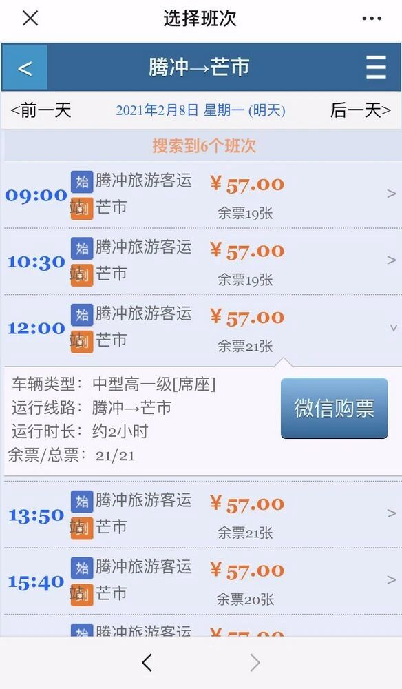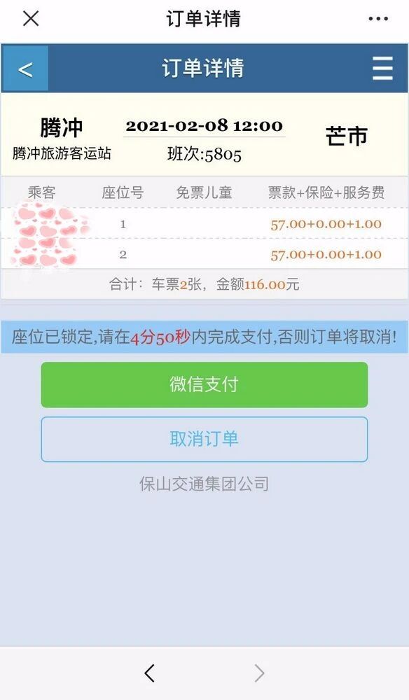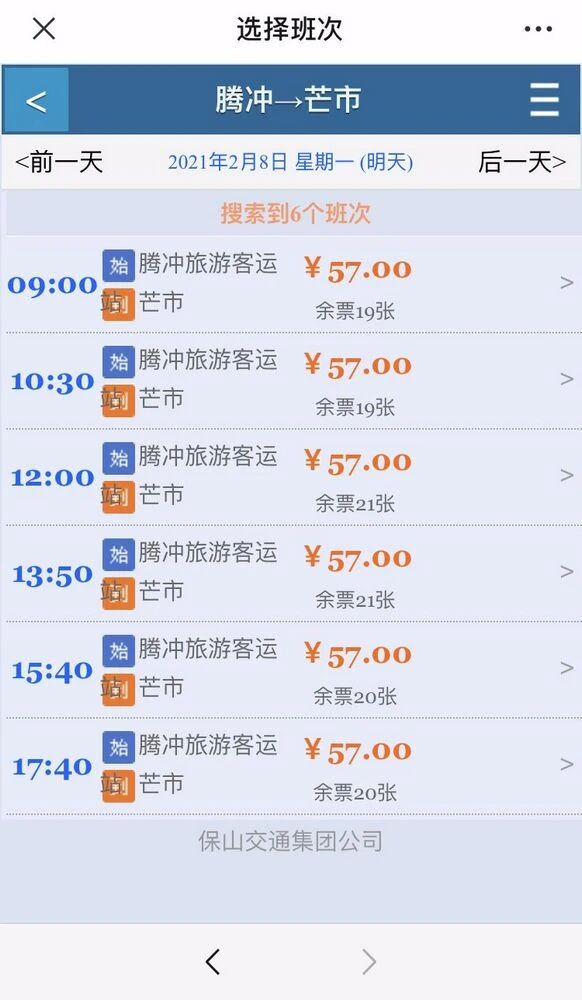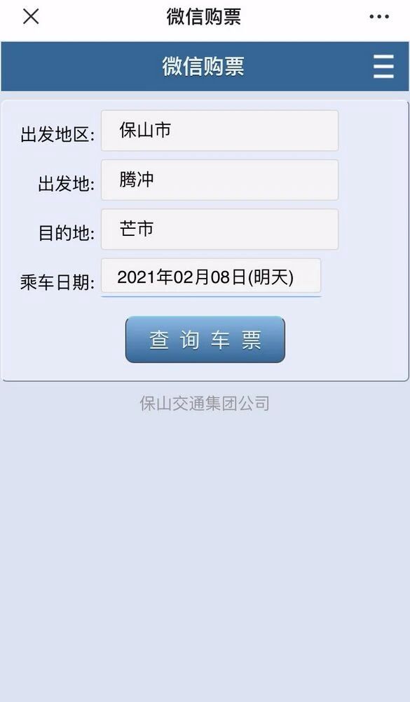 微信公众号“保交行”可预订腾冲至芒市的大巴票。