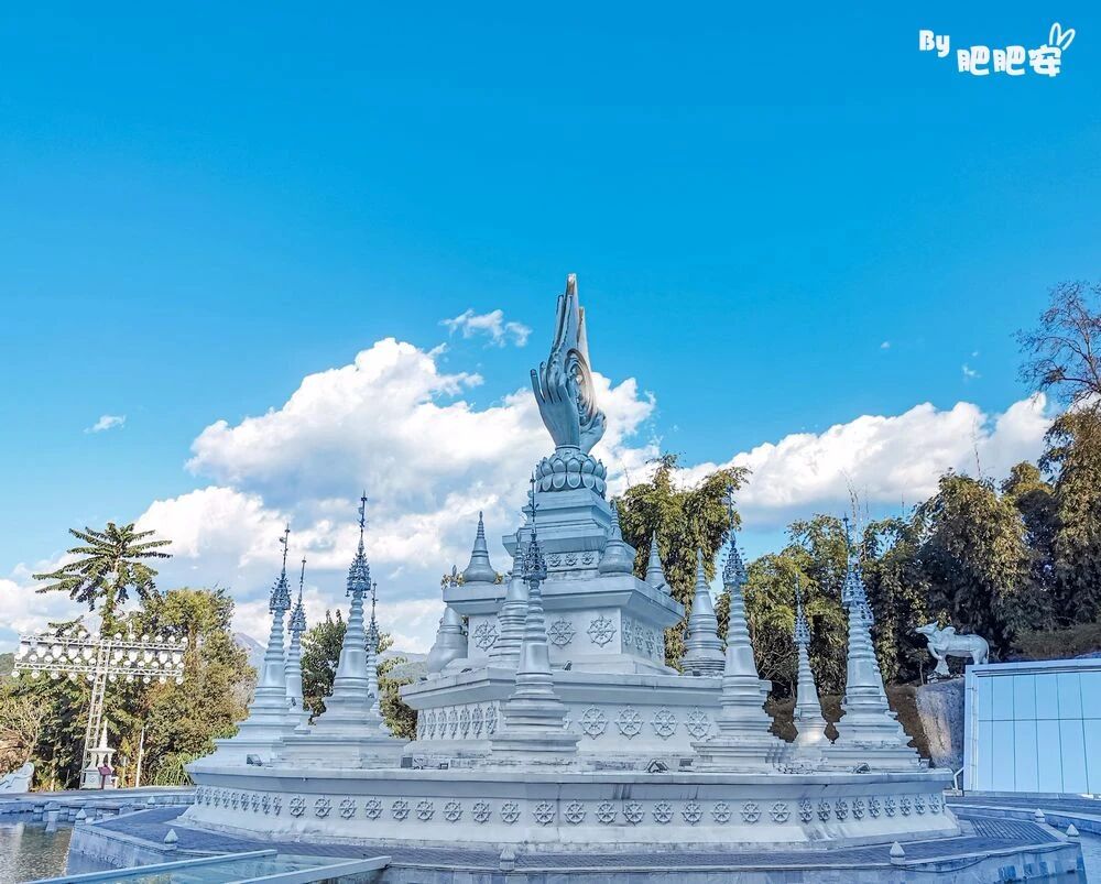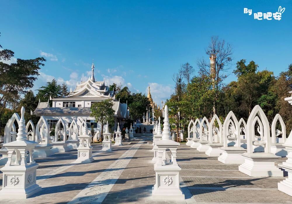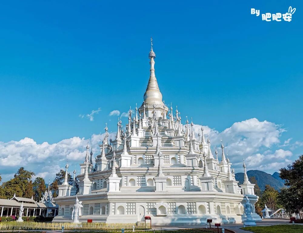 整体建筑以纯白为基调,与勐焕大金塔在色彩上形成鲜明对比。