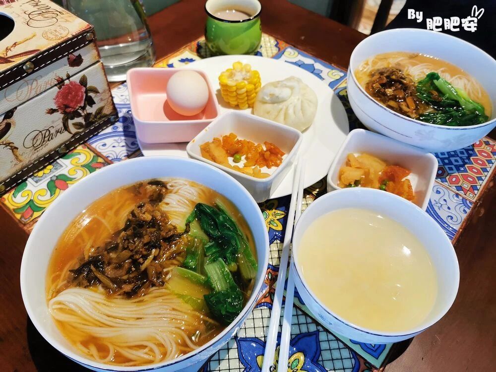 并提供面包、馒头、鸡蛋、玉米、咖啡、水果、果汁等。