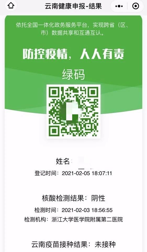 云南健康码上显示之前在杭州做的核酸检测机构、结果、时间。