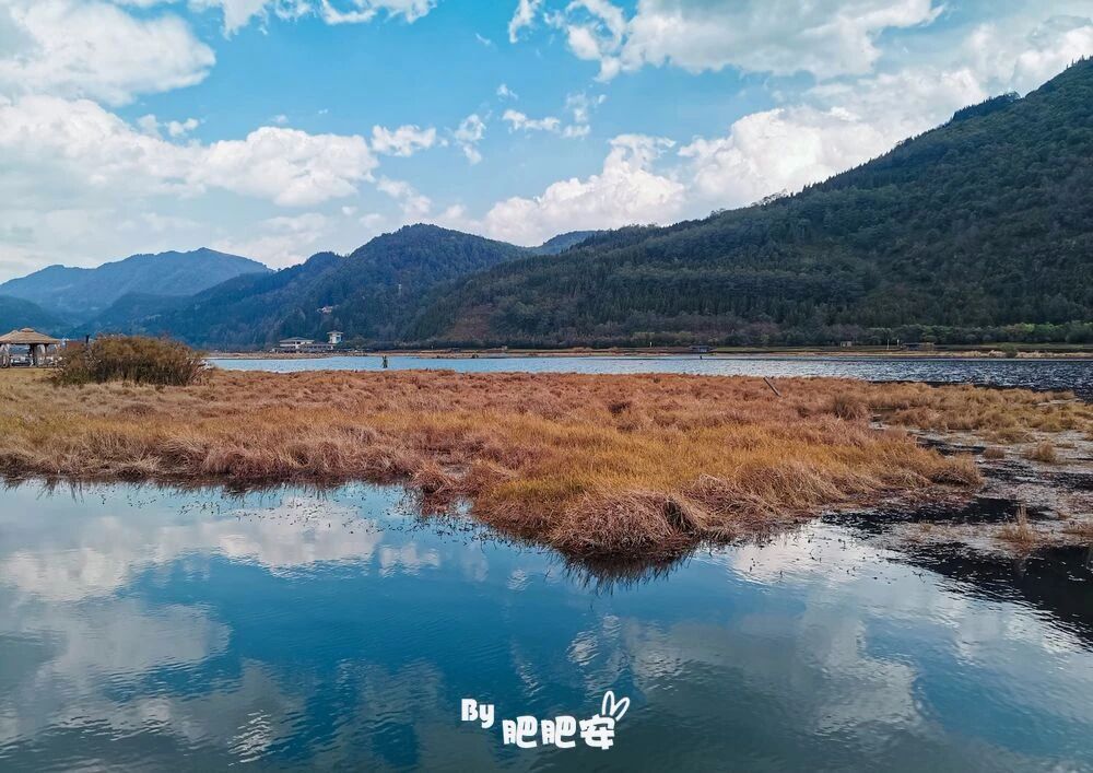 四面环山,地理位置特殊,属高原火山堰塞湖生态系统,大片漂浮于水面的陆地;