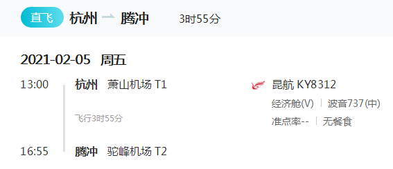 之前杭州天天有航班往返腾冲,临近春节航班减少。