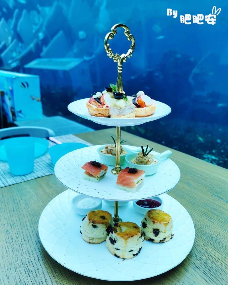 看到网上都是在海底餐厅用下午茶,原来都是摆拍,用餐是在里面的餐厅,仍可看到鱼和潜水者。