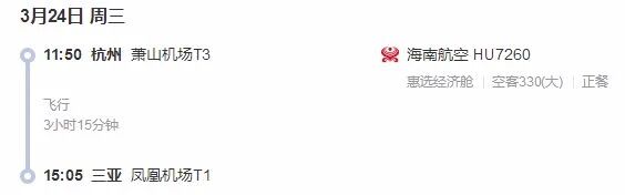 杭州飞三亚,成人价格(惠选经济舱 3.2折)¥789/人