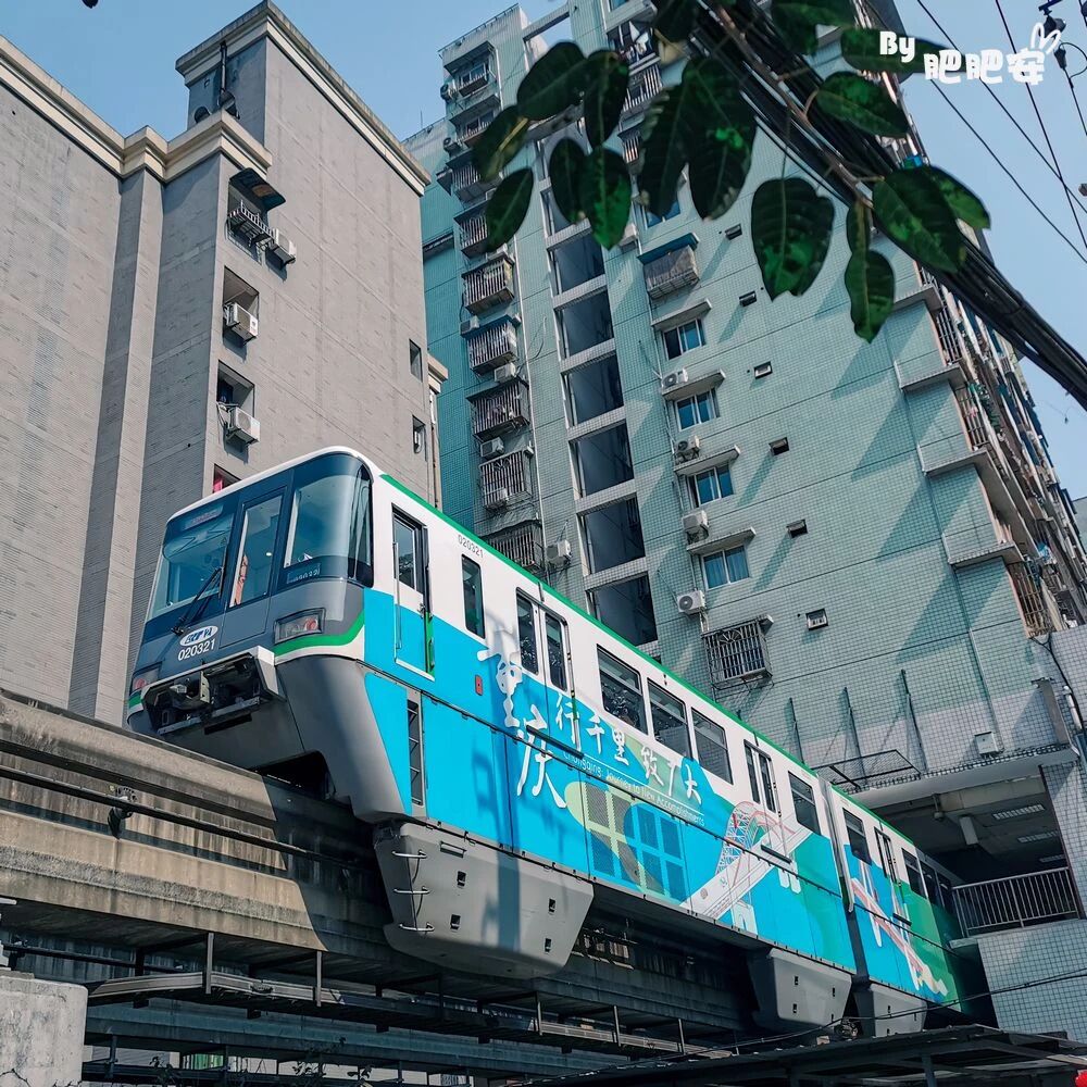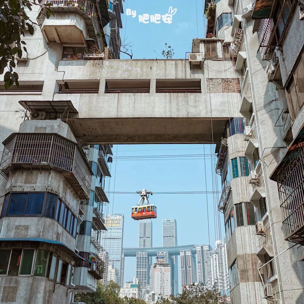 2号线「李子坝」站B口,懒得下楼去观景平台,就在地铁出来没多远拍了张照。