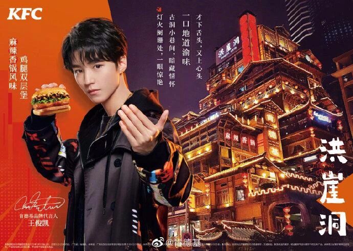 重庆地铁站里都是王俊凯做的肯德基广告,背景洪崖洞。