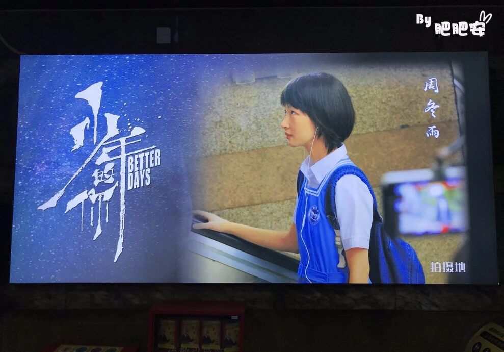 上行闸机口左右两侧贴着《少年的你》和《极限挑战》截图海报。