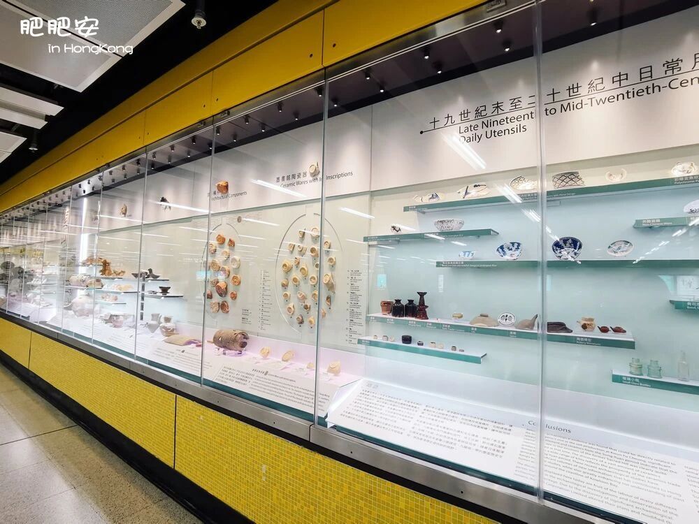 宋皇台地铁站内有一个“文物馆”,由一排嵌入墙中的展柜组成,从起点到终点不足百米距离。