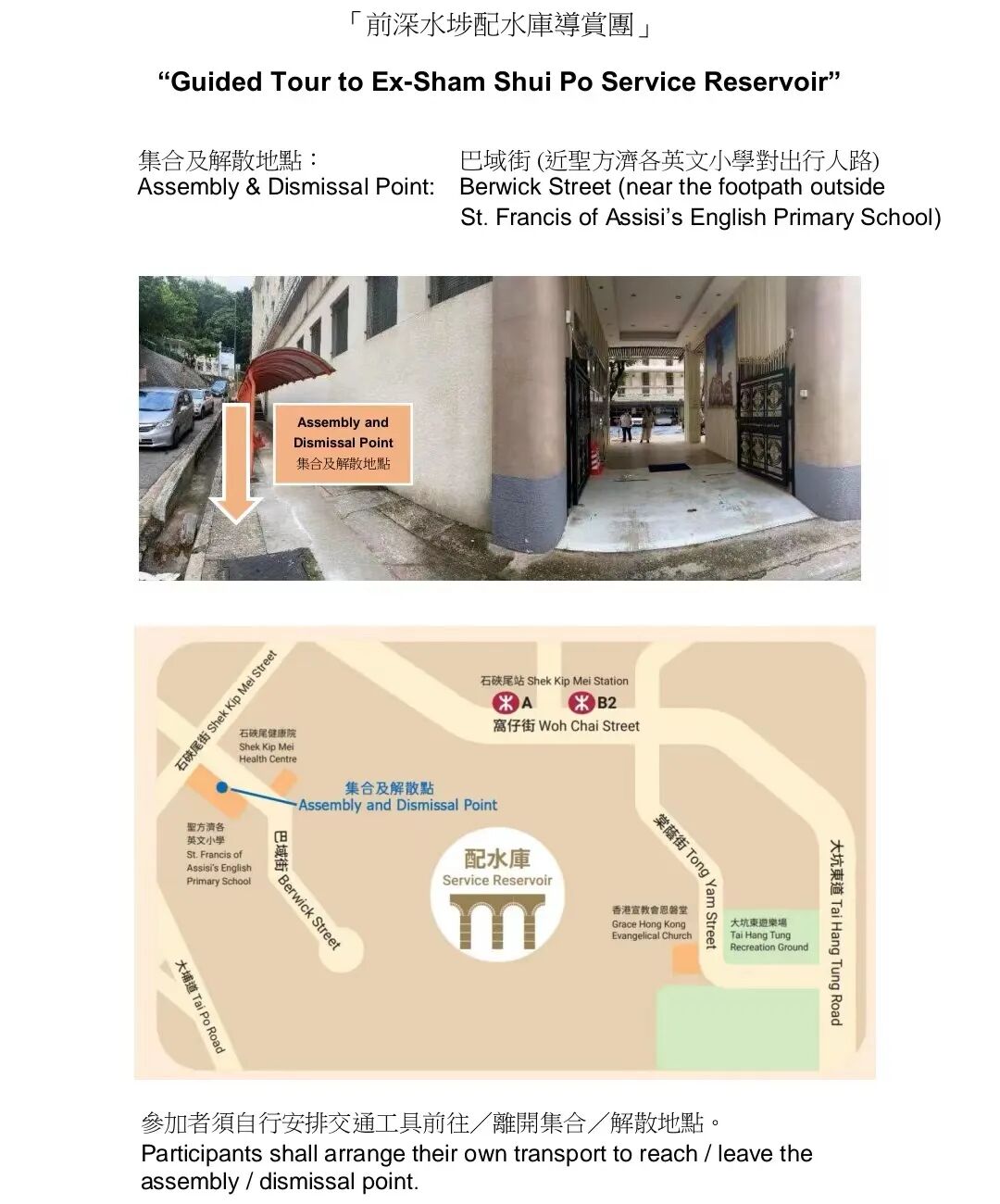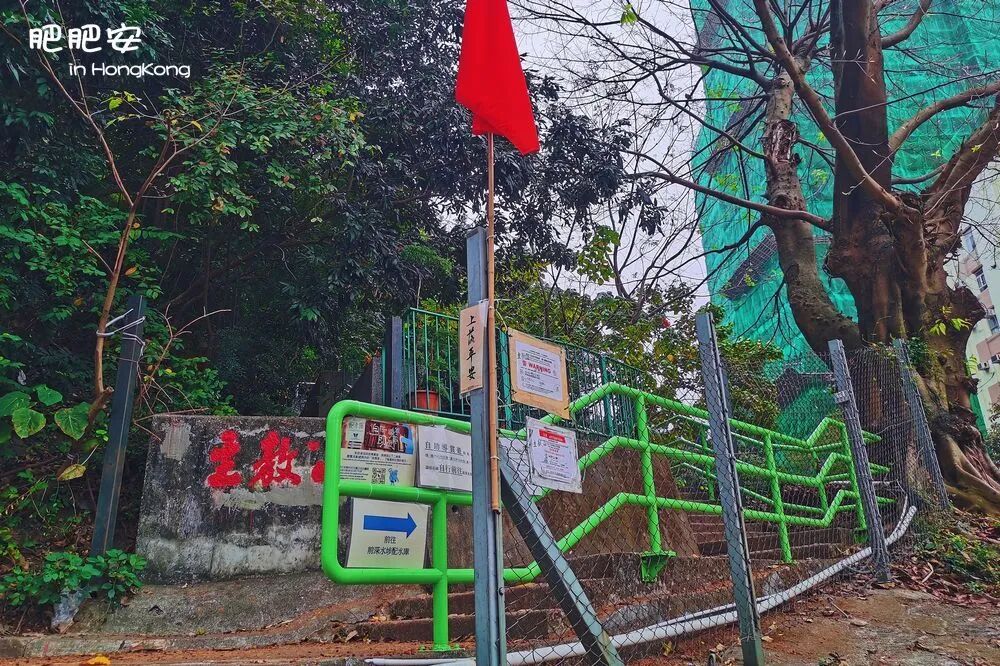 🚇石硖尾站A出口,看到圣方济各英文小学,沿着坡路一直往上走就会看到主教山的标志,沿着楼梯再一路往上走就会看到配水库入口。