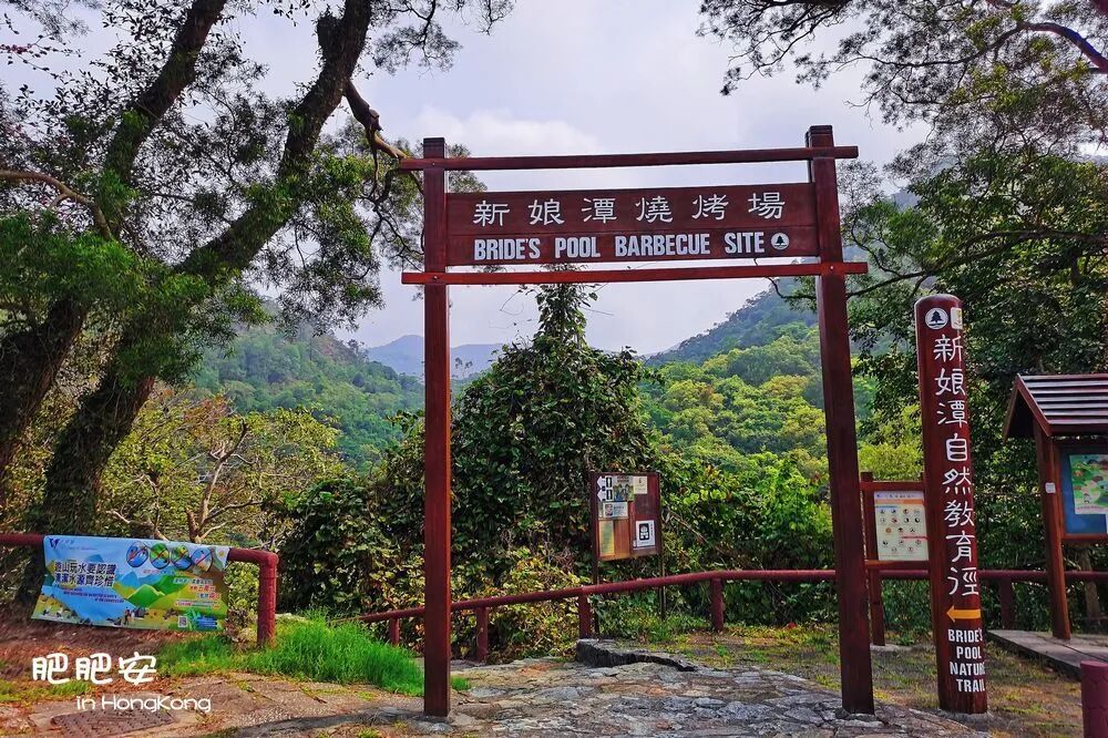 往前走1分钟是“新娘潭自然教育径”,往回走1分钟是“新娘潭烧烤场”。