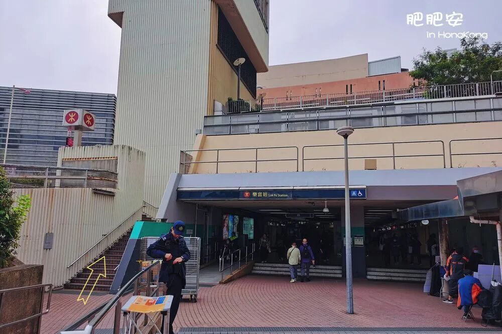 港铁观塘线「乐富」站A出口,右侧楼梯上台阶。