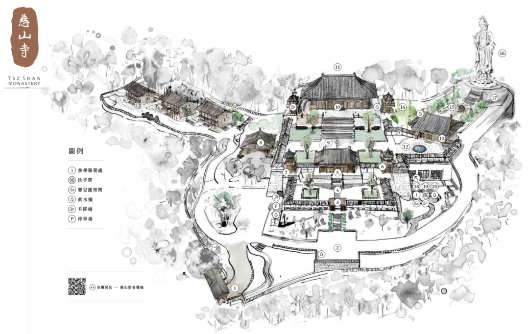寺内有世界第二高的76米青铜观音像,以“供水”取代烧香,参观者舀水倒入碗中,然后沿着中轴线走到观音像前,最后将水倒入大水缸中完成参拜。