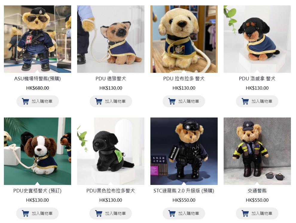 “处长熊”颇为吸引眼球。每个熊仔玩具戴着黑框眼镜、身着警察制服,肩章和警员编号与邓炳强所穿着的一致。